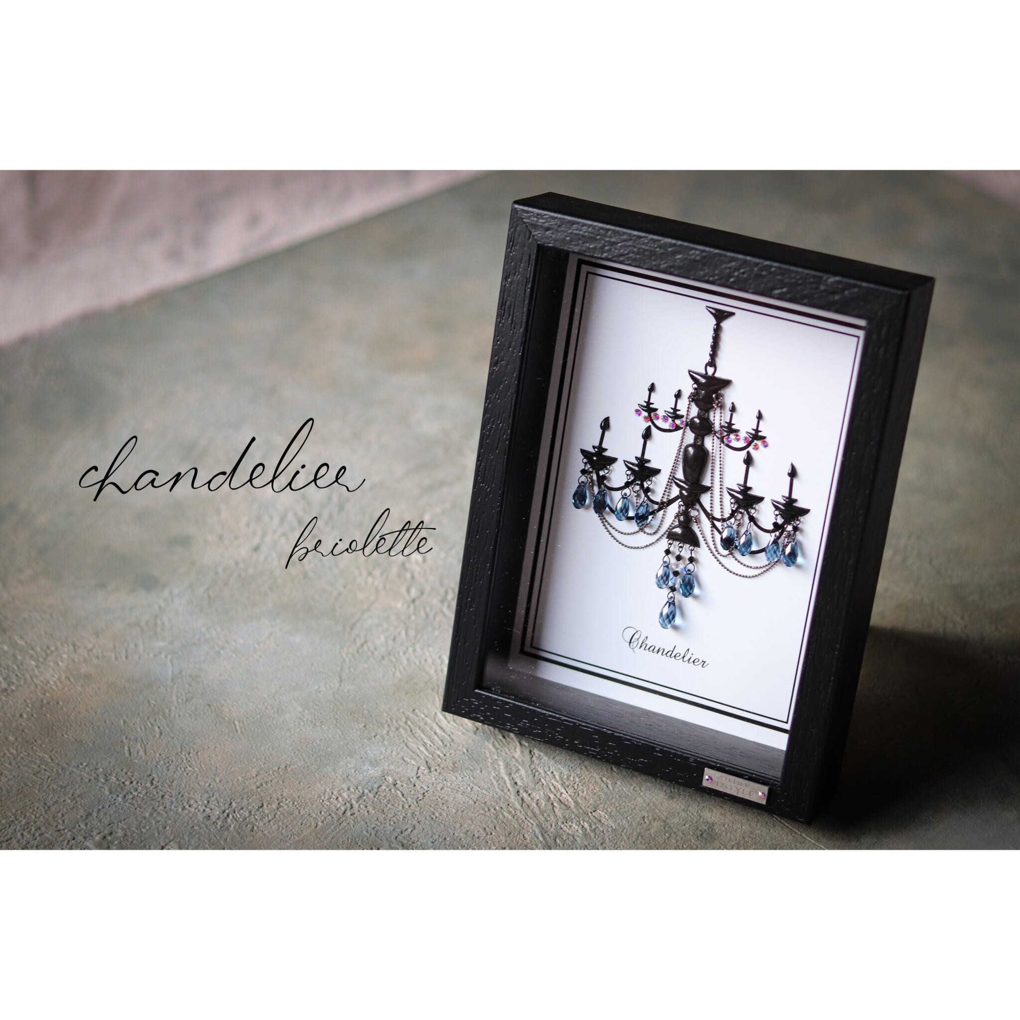 ATELIER TSTYLEオリジナルのアンティーク家具シリーズ『chandelier』のシャンデリアパーツをとっても人気のデニムブルーブリオレットカットのペンダント型クリスタルで作ったchandelierです!